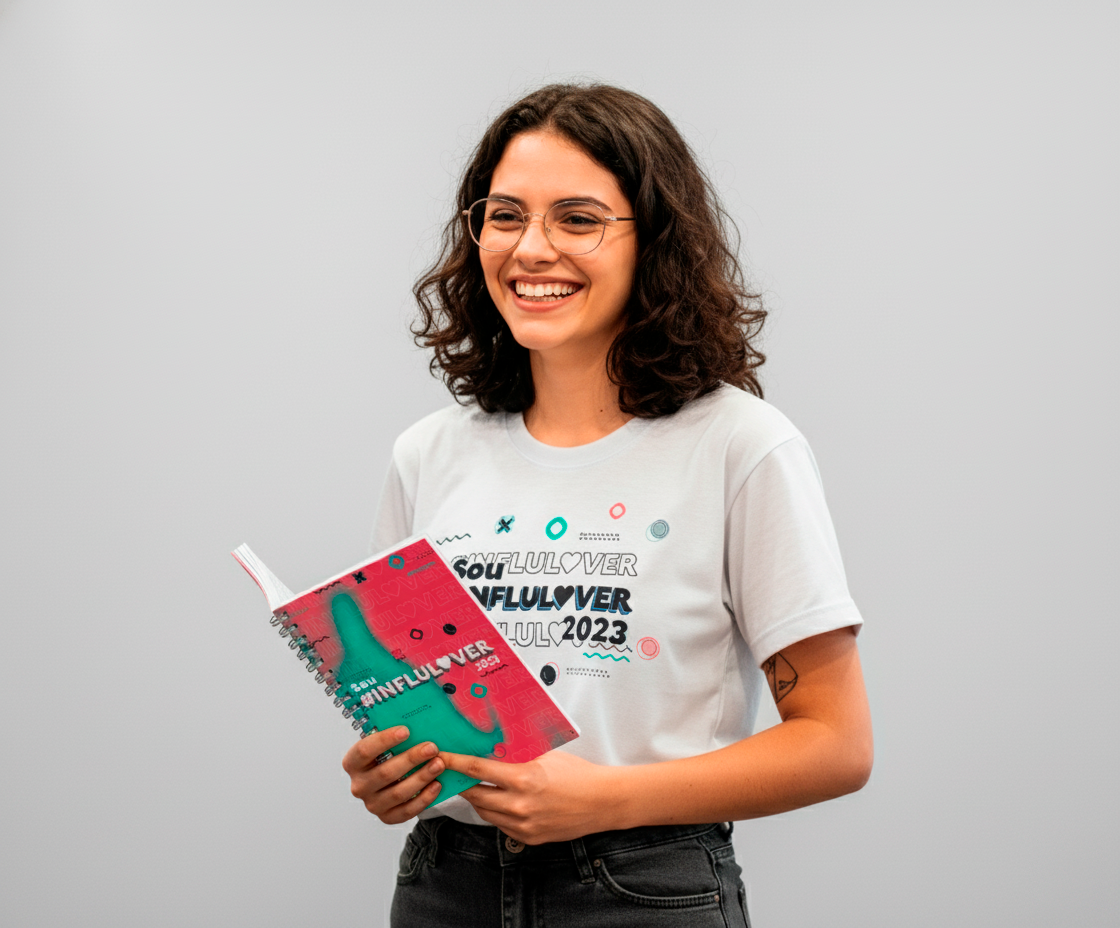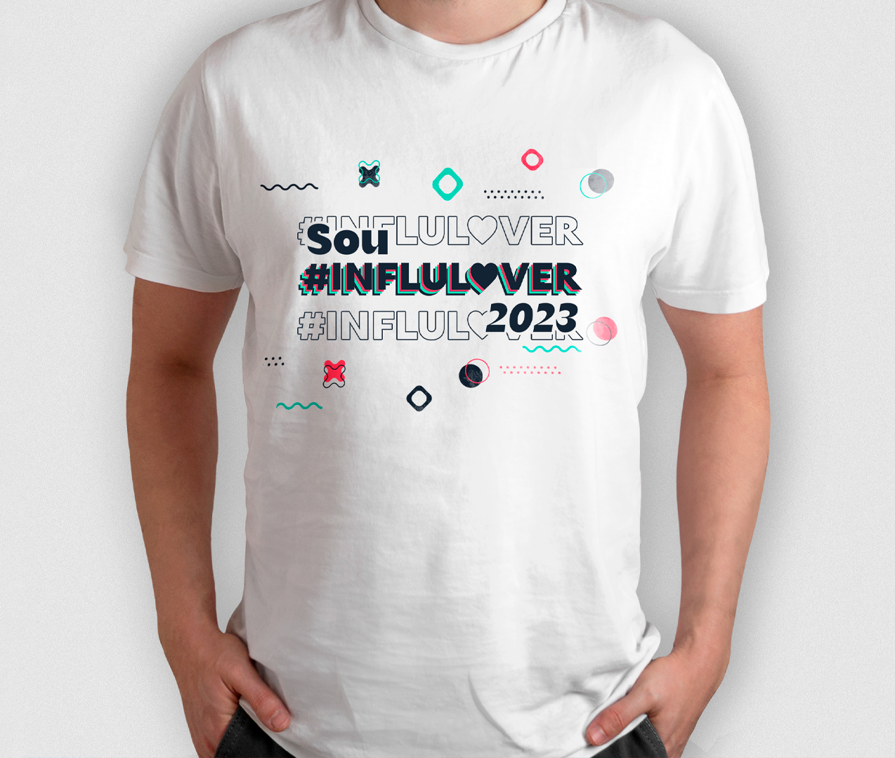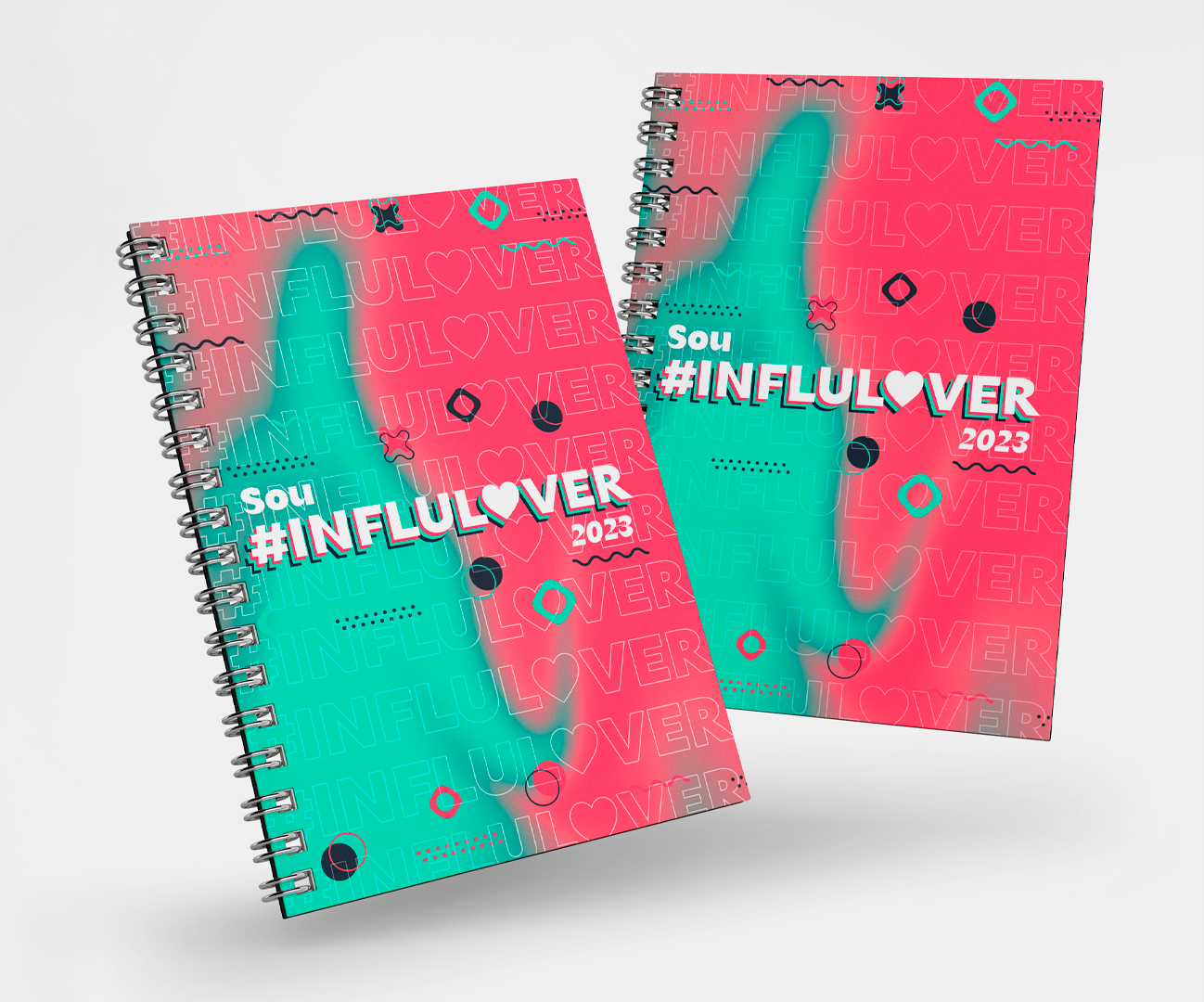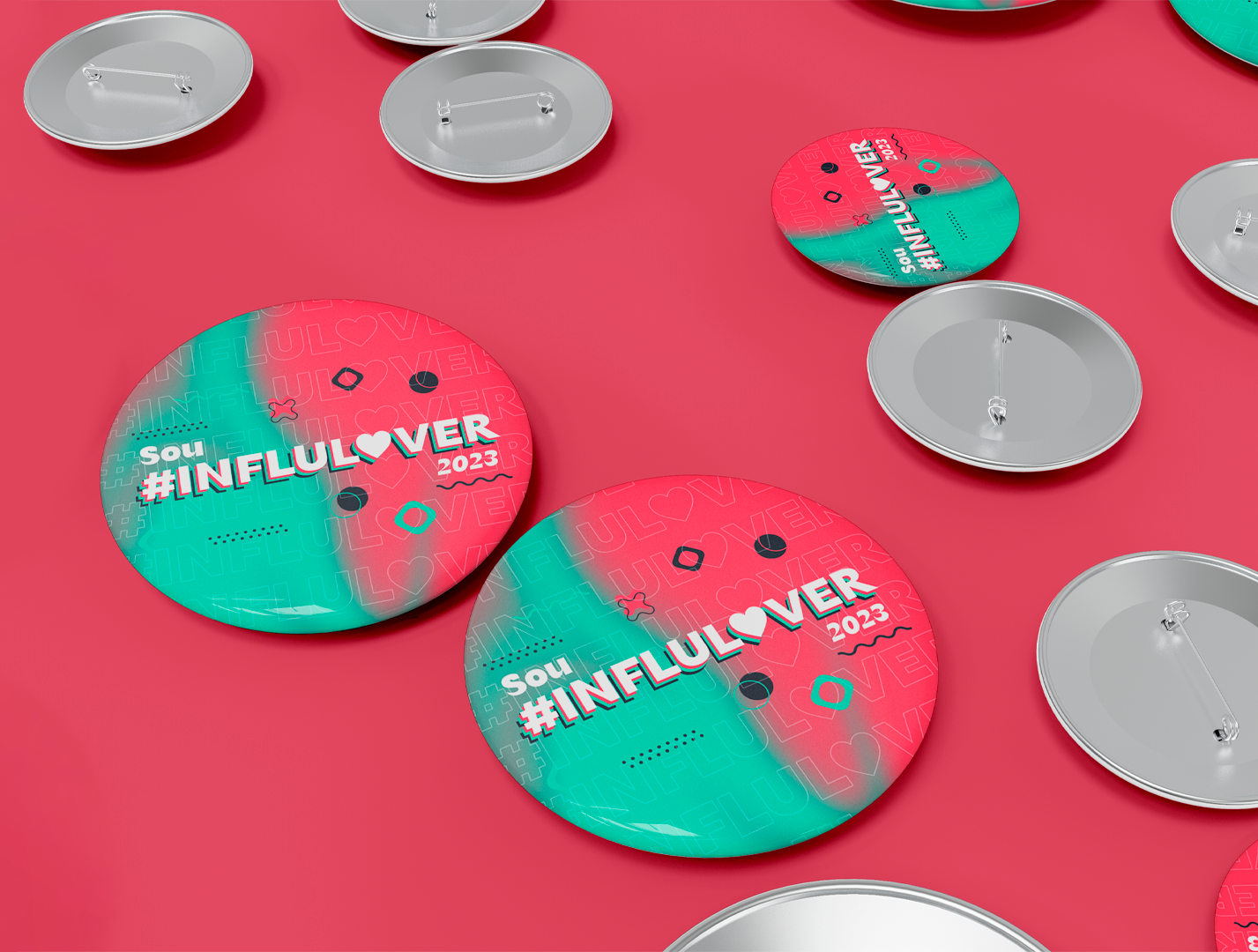 Aplicar a identidade visual do programa InfluLover em diferentes peças físicas e digitais, criando uma linguagem visual consistente e vibrante para os itens que compunham o kit de reconhecimento, garantindo coesão estética, legibilidade e impacto visual em cada formato.