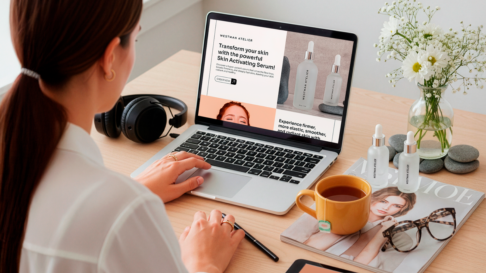 O resultado é uma landing page que reflete o DNA da marca, sofisticada, clean e funcional, enquanto reforça sua autoridade no segmento de clean beauty e maximiza o potencial de conversão.
