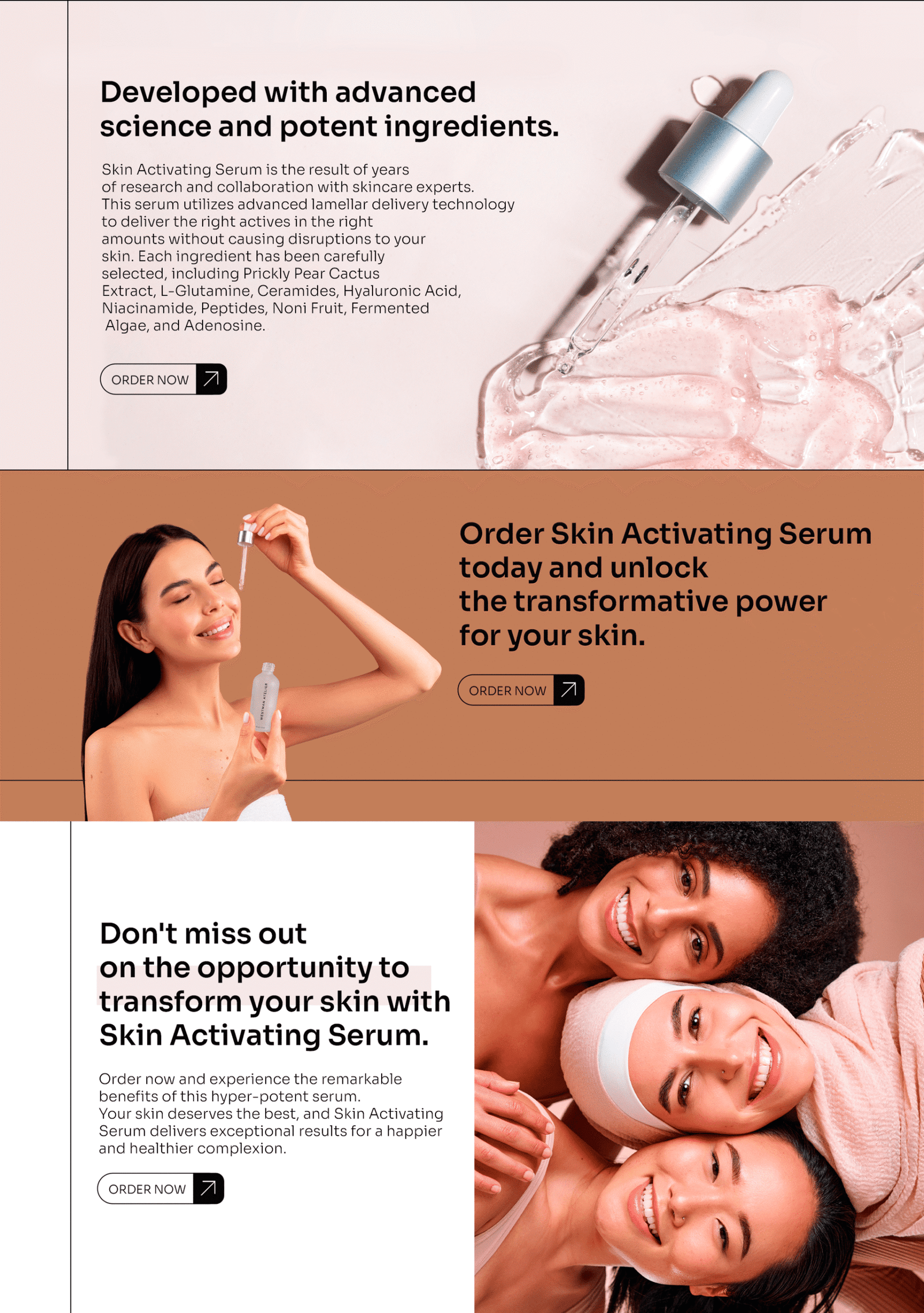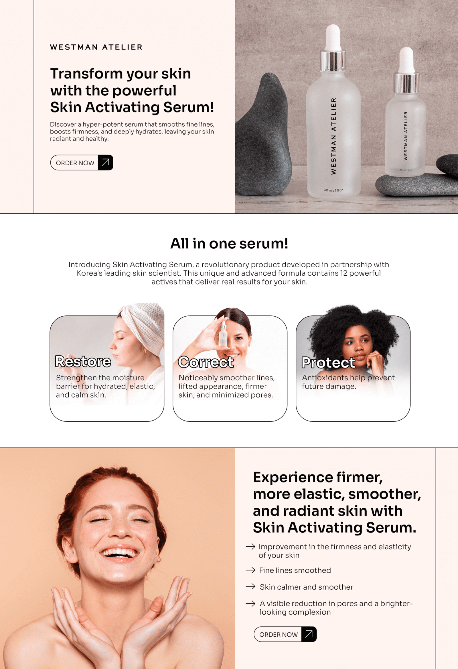 O projeto consistiu no desenvolvimento de uma Landing Page para o Skin Activating Serum, um produto que une tecnologia avançada e cuidado com a pele.